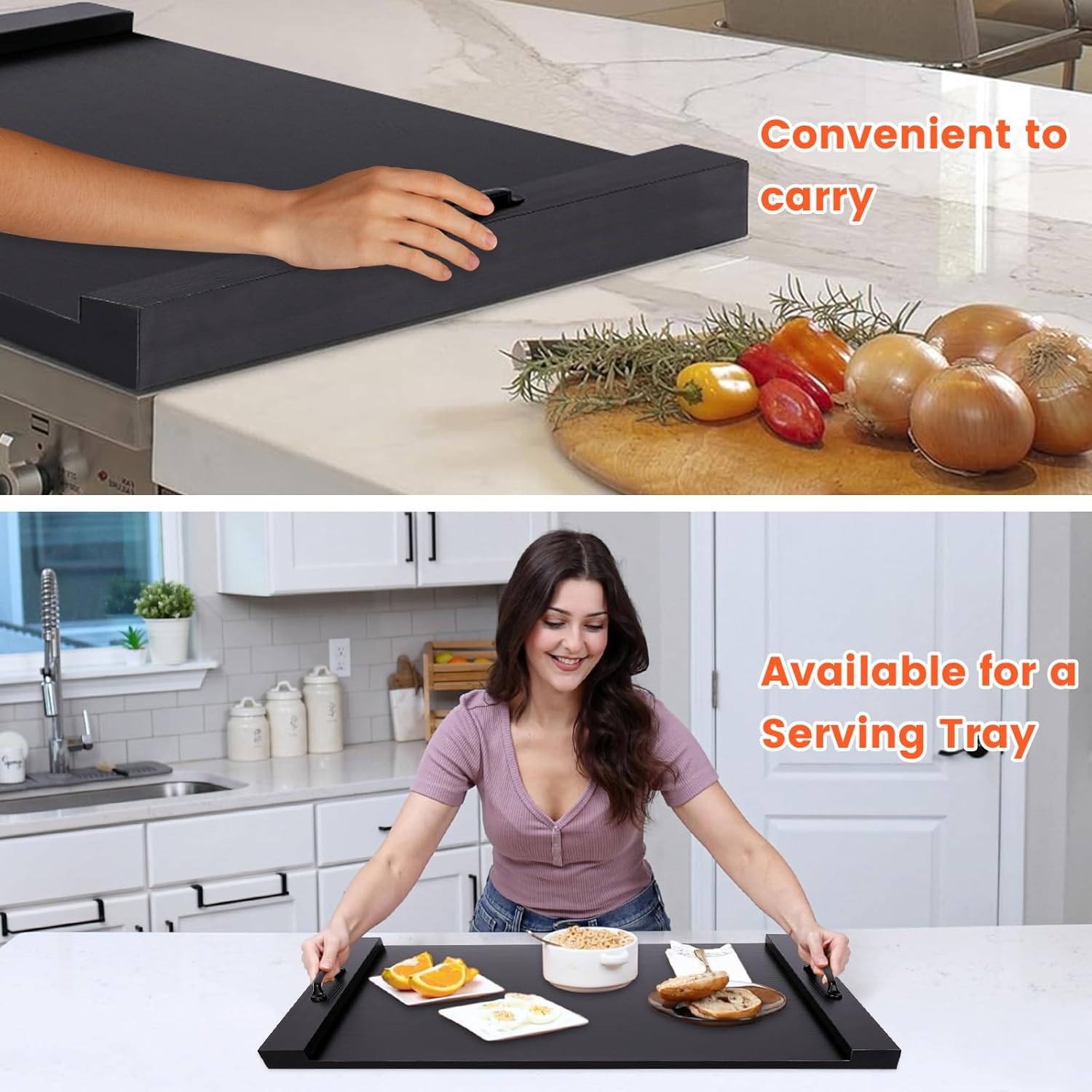 Noodle Board Stove Cover Cutting Board for Electric/Gas Stove Top, Multiuse Acacia Wood Stove Cover Board for Serving Chopping Decorating, Black