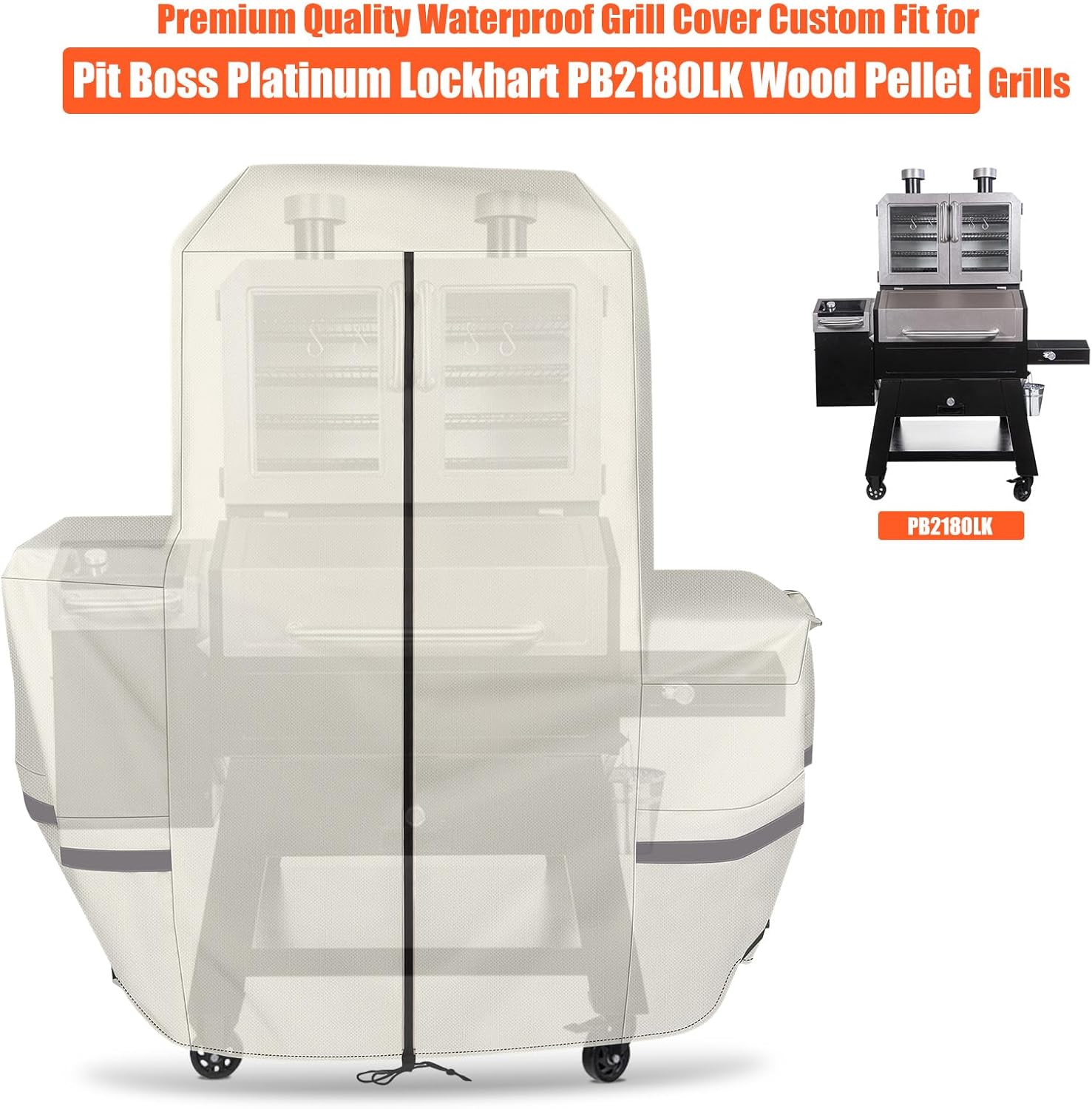 Premium Grill Cover for Pit Boss Lockhart Platinum Wood Pellet Smoker Combo Series 10500, PB2180LK Grills, Beige