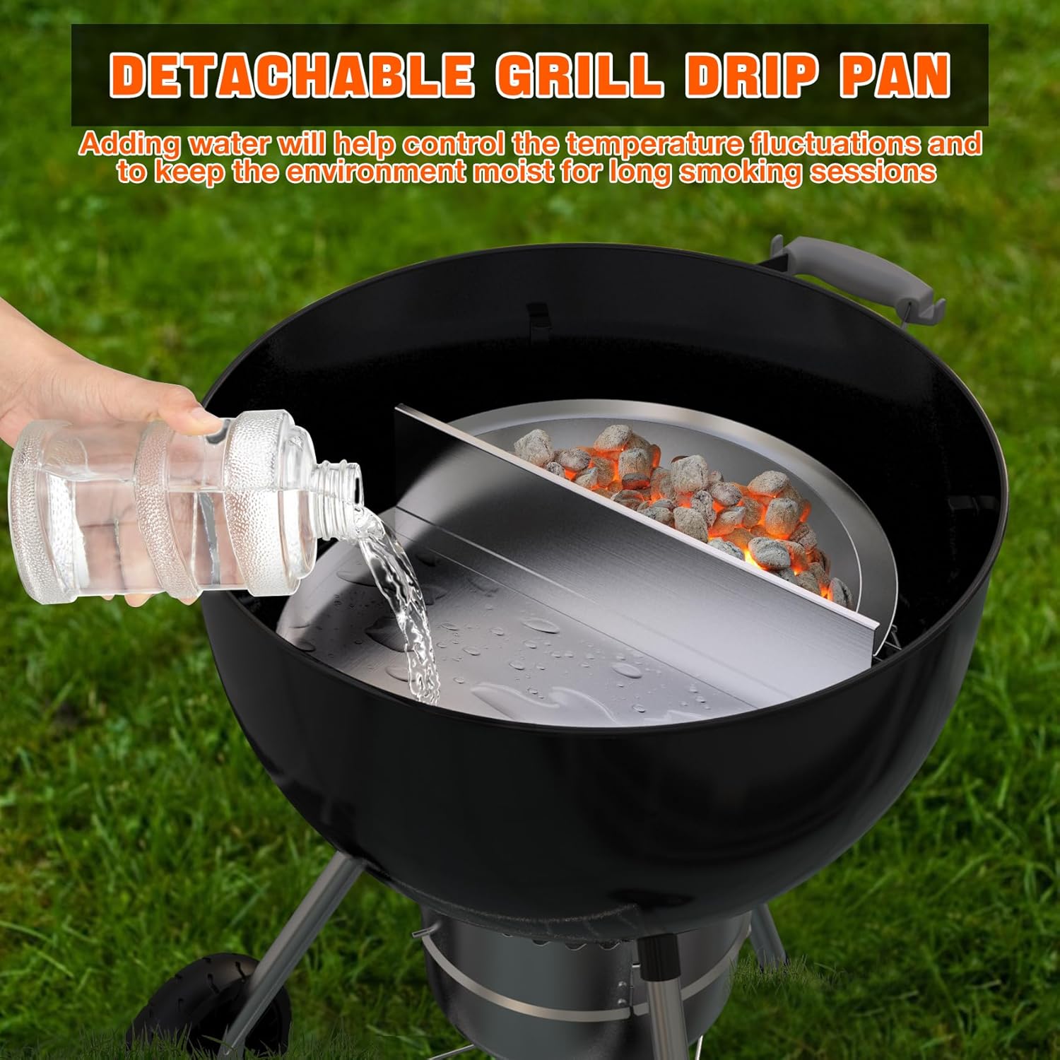 Stainless Steel Detachable Grill Drip Pan for Weber 22" Kettle Grills, Grease Tray Liner with Removable Charcoal Divider, Semi-Circular