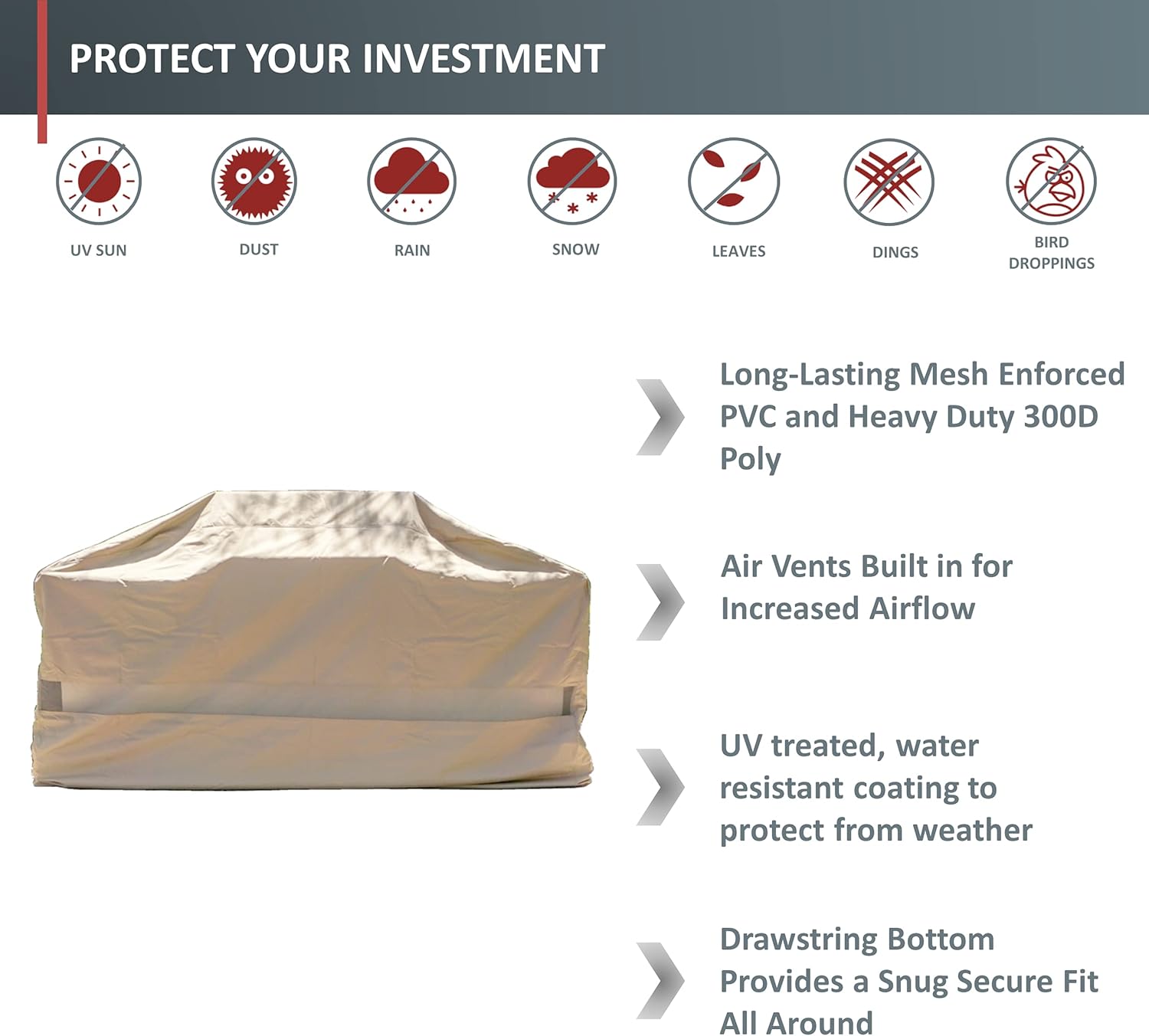 Waterproof BBQ Island Grill All Weather Protection Cover for Large Outdoor Kitchen BBQ Grill, 124"W x 44"D x 48"H